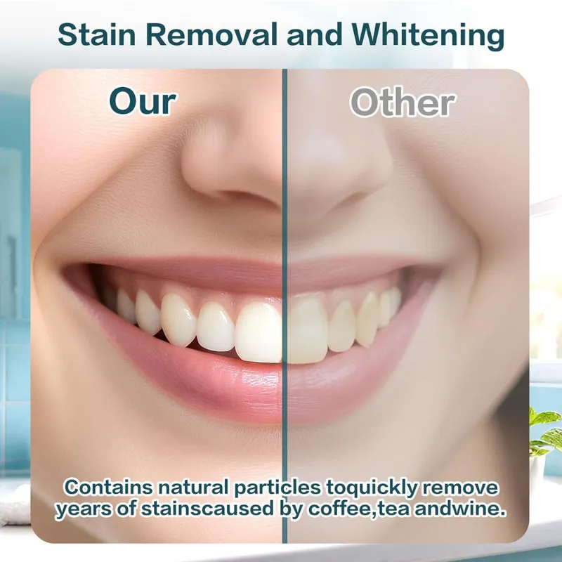 يزيل البقع الناتجة عن القهوة، الشاي، والتدخين تدريجياً